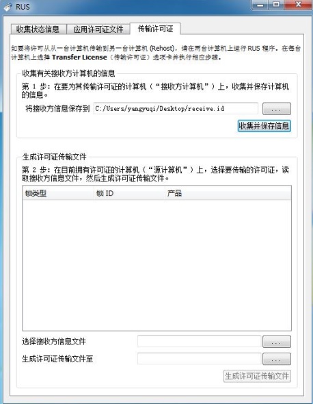 在B電腦上,運行RUS,如下邊截圖,應(yīng)用許可證文件 rehost.h2h,點擊左下角按鈕“應(yīng)用更新”即可。
