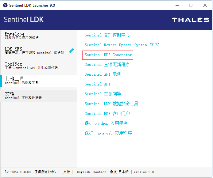 Sentinel LDK9.x及之后版本從主界面上其它工具進入生成RUS工具