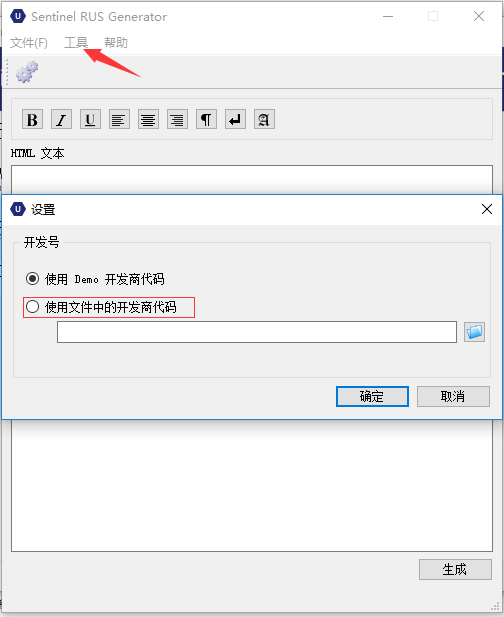登錄EMS,在“開發(fā)人員”界面,選“RUS標記”,選擇自己的主鎖開發(fā)號,填入適當?shù)淖⑨屛淖郑ㄒ部梢圆惶睿?,左下角點生成,系統(tǒng)會生成一個“RUS”開頭的exe文件。