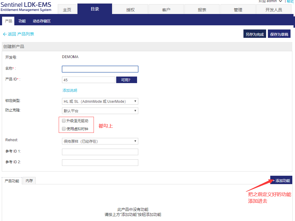 2、定義產(chǎn)品---把這個功能ID與開發(fā)商的軟件名稱關聯(lián),包括設置時間、次數(shù)等限制;